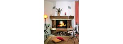 Une cheminée d'angle rustique en roche de Provence à pans coupés. La pierre de rocaille s'associe parfaitement avec la pierre du Gard et les briquettes des Cévennes.